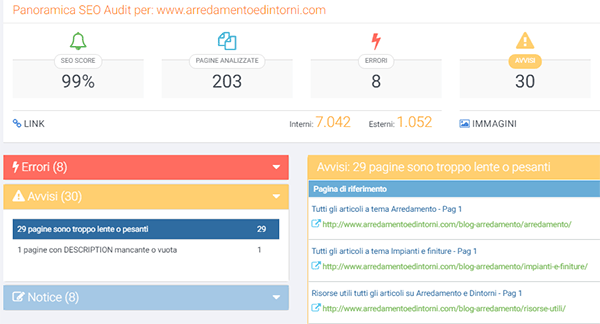 Nel mio lavoro di consulente SEO a Udine questa funzione mi ha dato un enorme vantaggio, mettendomi in evidenza i problemi di ottimizzazione Onpage in modo chiaro, in modo da, altrettanto chiaramente andare ad intervenire.